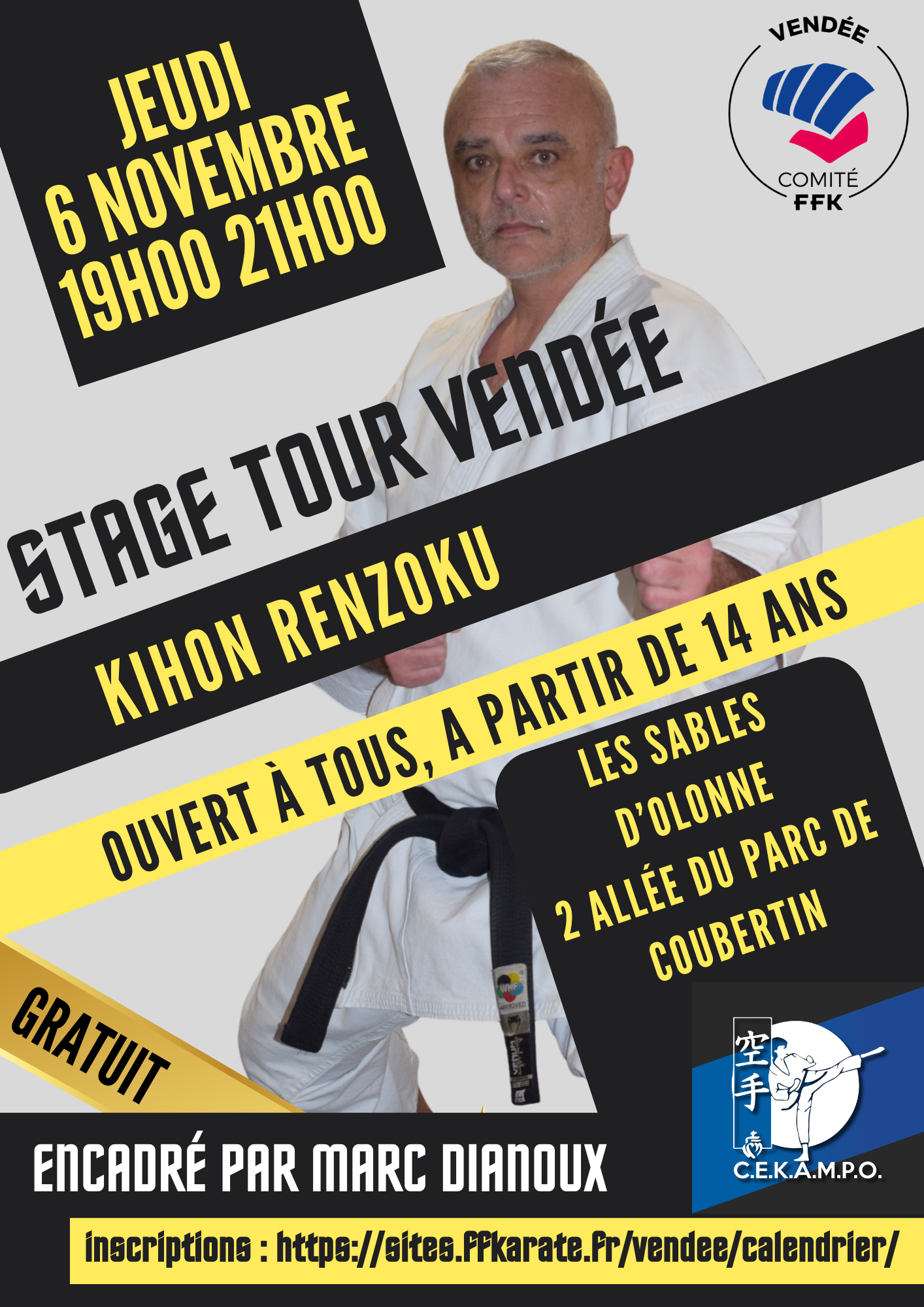 VENDEE TOUR KARATE Date Jeu. 6 Novembre 2025 Lieu DOJO COUBERTINRUE DE COUBERTIN 85100 LES SABLES-D'OLONNE