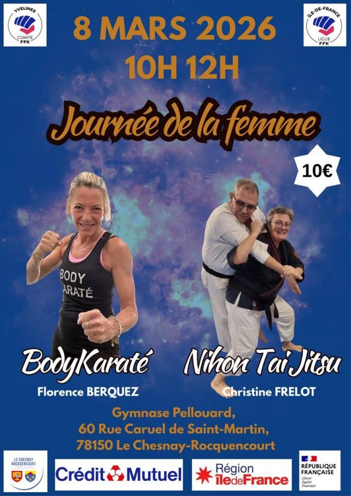 CDK78-LRIDF K&DA JOURNEE DE LA FEMME Date Dim. 8 Mars 2026 de 10h à 12h Lieu GYMNASE PELOUARD - LE CHESNAY-ROCQUENCOURT60 RUE CARUEL DE SAINT-MARTIN 78150 LE CHESNAY-ROCQUENCOURT
