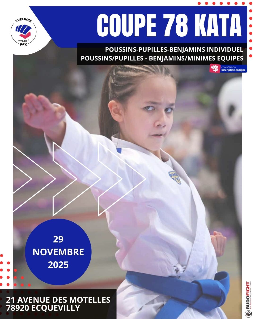 COUPE DES YVELINES KATA POUSSINS-PUPILLES-BENJAMINS Date Sam. 29 Novembre 2025 Lieu ECQUEVILLY21 AVENUE DES MOTELLES 78920 ECQUEVILLY