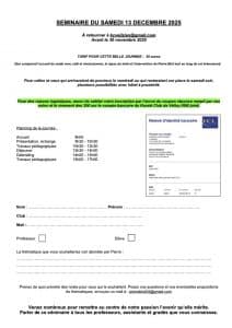 - Inscription sur place (merci de vous présenter 15 mn avant)